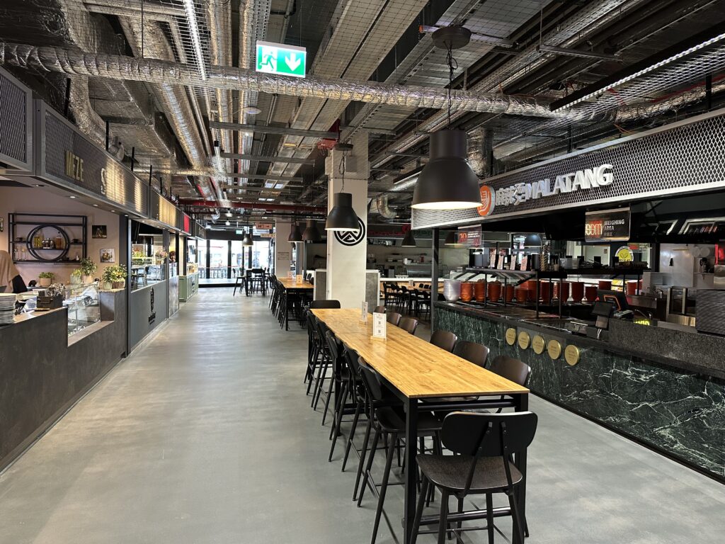 Die Markthalle ist Teil des Revitalisierungsprojekts Königshof Essen – einem umgestalteten ehemaligen Kaufhaus in 1A-Lage direkt am Hauptbahnhof.